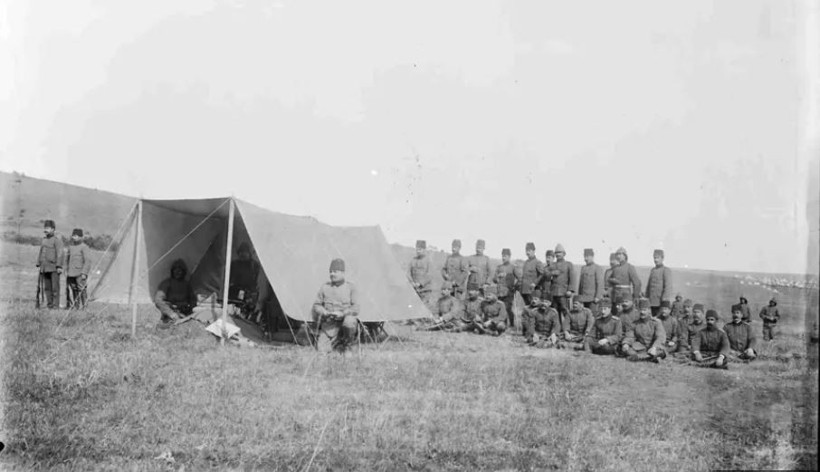 Fahreddin Paşa’nın Balkan Harbi`nde Tekirdağ’da 31. Tümen’de yer alan karargah çadırı ve askerleri